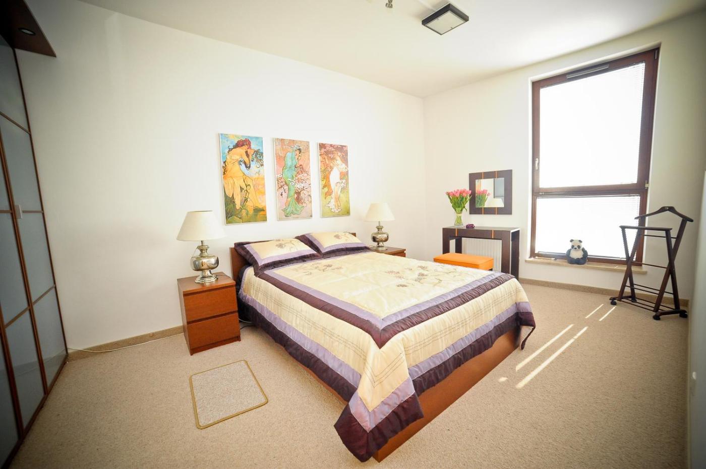 Oferta apartamentu obejmuje sypialnię (1), salon, aneks kuchenny z pełnym wyposażeniem, w tym lodówką i ekspresem do kawy, a także łazienkę (1) z prysznicem oraz suszarką do włosów. W apartamencie zapewniono ręczniki i pościel.