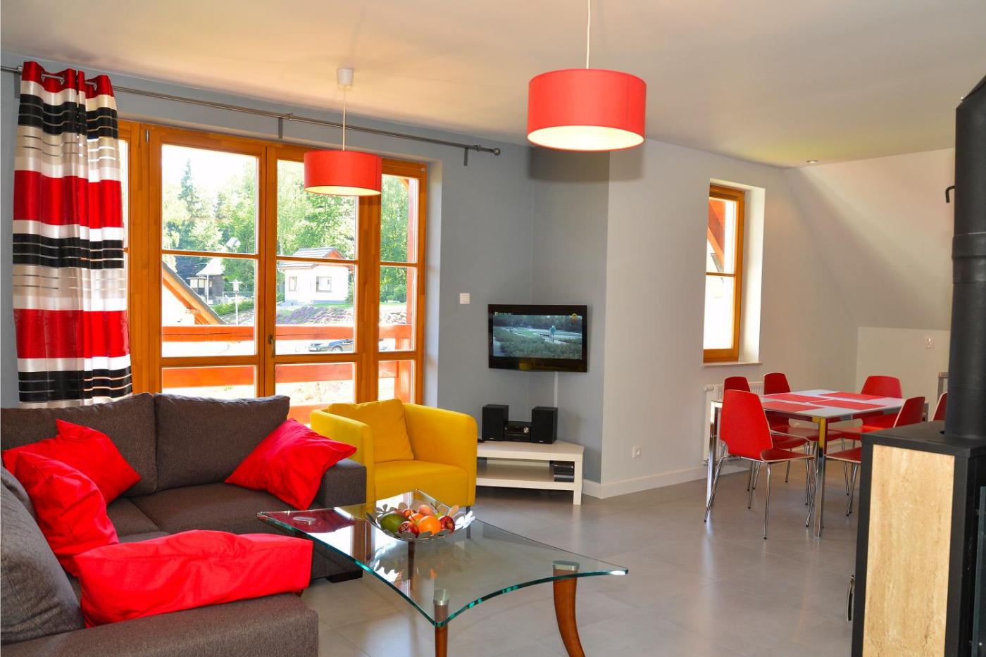 Apartament. Jest to apartament z kominkiem. Ten przestronny apartament z oddzielnym wejściem mieści salon, 4 oddzielne sypialnie oraz 2 łazienki z kabiną prysznicową. Udogodnienia obejmują aneks kuchenny z płytą kuchenną, lodówką, zmywarką do naczyń i przyborami kuchennymi. Do dyspozycji gości jest ekspres do kawy, część wypoczynkowa, telewizor z płaskim ekranem i balkon. W opcji zakwaterowania znajduje się 7 łóżek. Apartament - 8 osobowy. Powierzchnia pokoju ok.: 95 mkw. ;